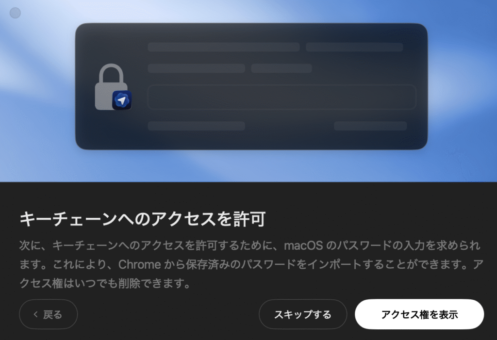 各種サイトでのパスワードの入力が楽になります。特にスキップでも問題ありません