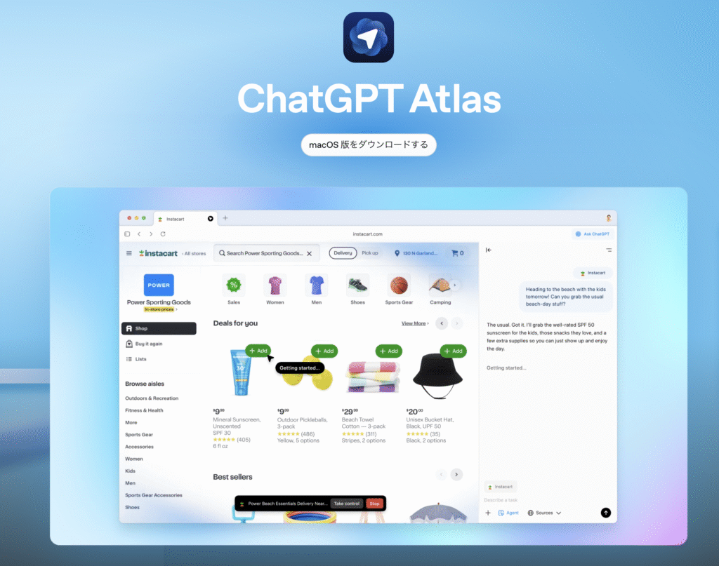 2025年10月22日、OpenAIはChatGPTを核とした新しいWebブラウザ「ChatGPT Atlas」を公開しました。まず最初にmacOS版が配信され、無料ユーザーからPro会員まで、すべてのChatGPT利用者が使えるようになっています。Windows版やスマートフォン向けアプリも、近い将来リリースされる予定です。
