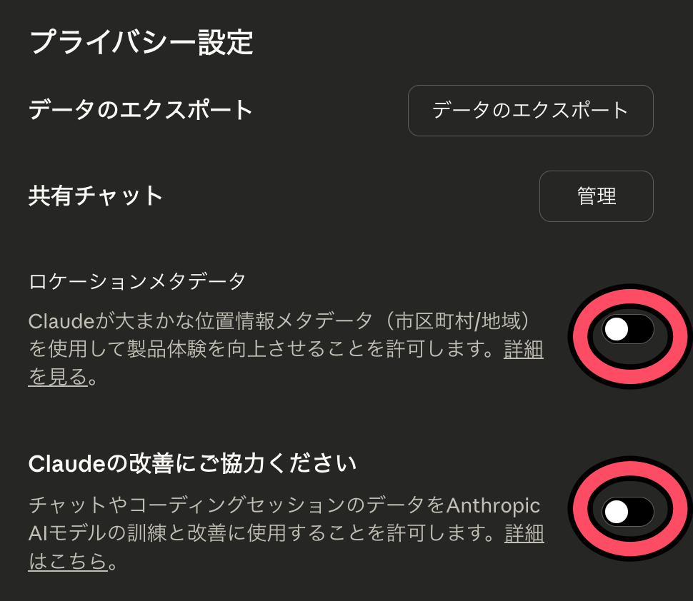 実はClaudeでのチャットはAI学習に使用されているんです。