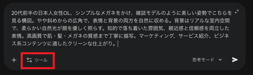 まず、Geminiにアクセスし検索窓にプロンプトを入力します